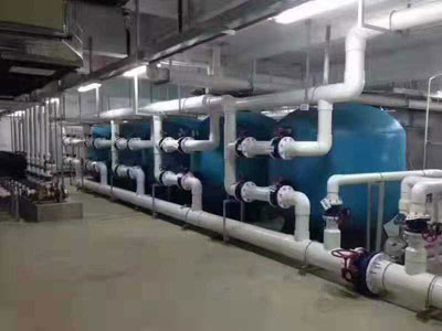 游泳池循環(huán)水凈化處理設(shè)備機房,一般由均衡水池(或平衡水池)、循環(huán)水泵、過濾器、加藥設(shè)施、換熱器、消毒設(shè)備、化學(xué)藥品和助凝劑、特殊設(shè)施、系統(tǒng)運行操作控制設(shè)備等內(nèi)容組成。