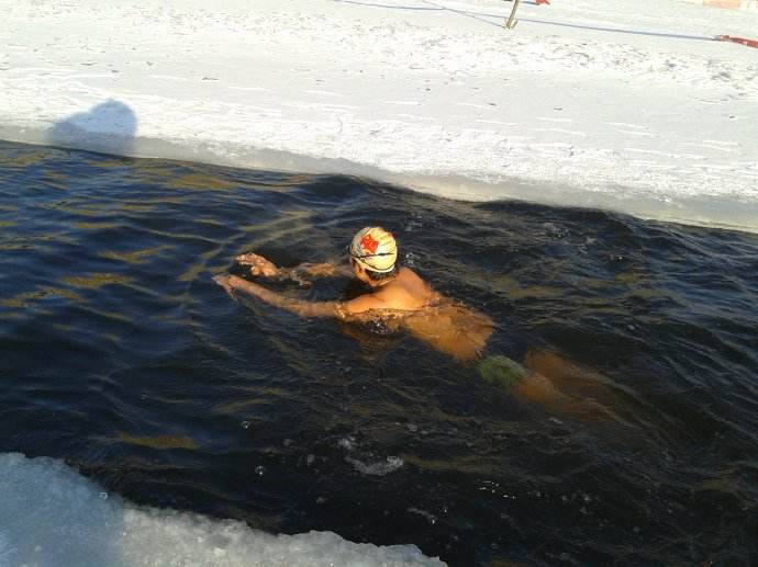 冬泳的運動量要控制在安全有效的范圍內。如果在水里時間過短,沒有經受充分的刺激,就達不到鍛煉的效果。一般來說,剛下水時體溫迅速下降,會感到發冷,隨后皮膚發紅,體溫開始回升,感覺溫暖而舒適,這時離水上岸,一般會感到比較輕松適意。如果繼續接受冷水刺激,等到身體打寒戰、手腳發麻,就已經是運動過量的表現,這樣極容易損傷某些器官和組織。