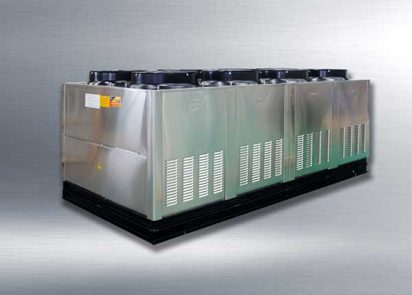 我公司公司與國外研發中心共同研發的空氣源熱泵熱水機組全部采用非外露封閉式V型結構,目前在國內是唯一一家。該結構采用側下進風形式的V型結構,此結構采用三層換熱,換熱能力高,保證設備換熱達到了極限(壓縮機及其他附件工作時產生的熱量得到有效回收利用),并可以實現自由的無縫拼接,機組之間不需要距離要求,更不受冬季的風向等外部環境影響,效率更穩定。