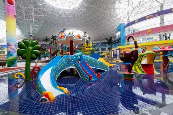 室內恒溫兒童水樂園按功能區分為分為接待區、預備區、游樂區、游泳區、機房共5大部分。