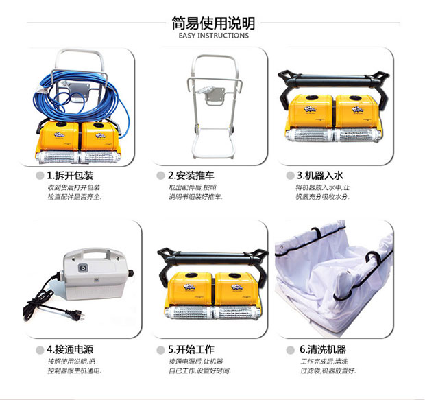 海豚2×2游泳池吸污機獨立操作,耗電量低,清掃、洗刷、過濾讓您的泳池清潔無后顧之憂,集新性能與改進性能于一體,可完成擦洗、清掃、真空吸附及過濾工作,使你的泳池清澈見底。